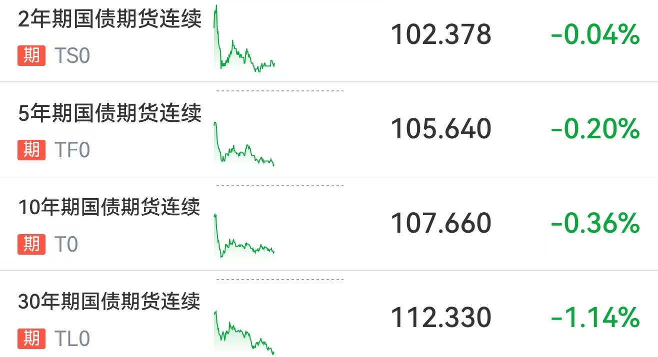 一、国债期货:-0.356%(反映市场对未来债市预期,国债期货越涨,债市越涨,两者正向关系)
