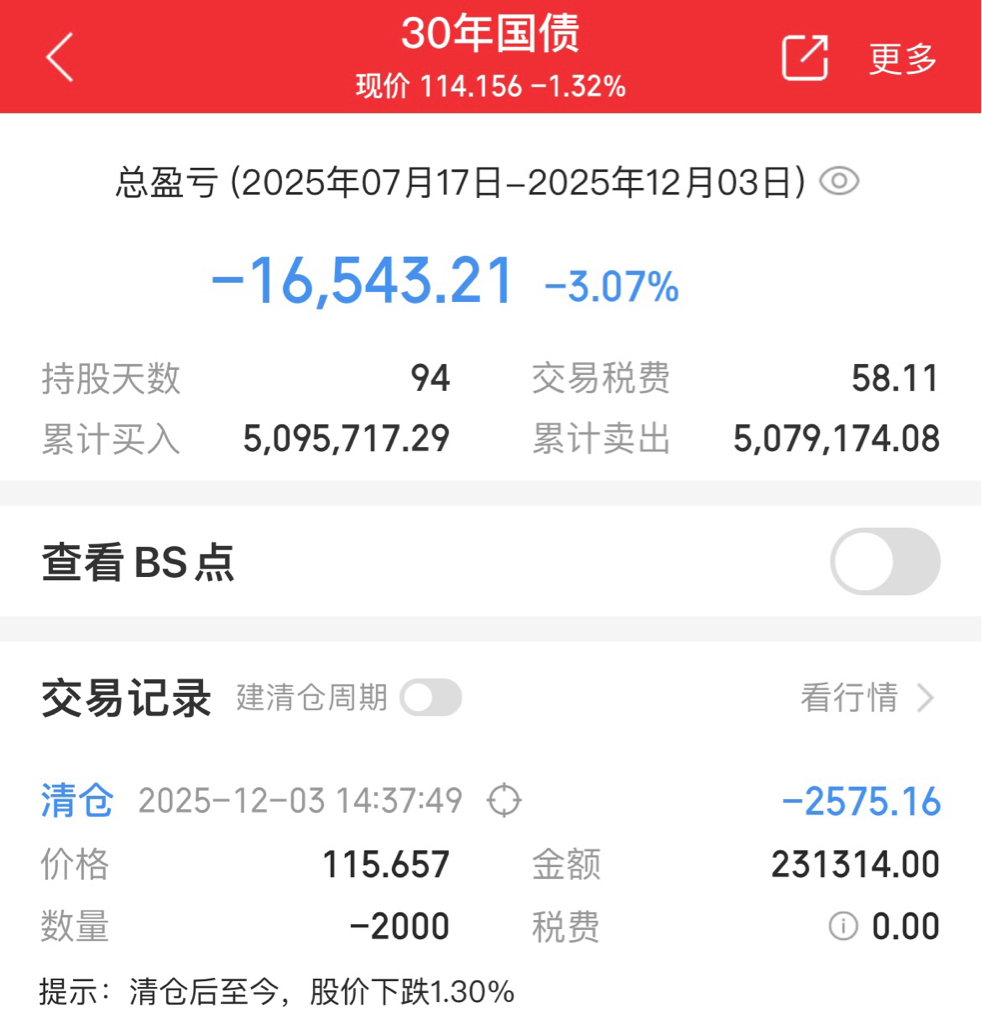 $30年国债ETF(SH511090)$ 好家伙昨天忍痛割肉离场,今天看感觉像赚了一样