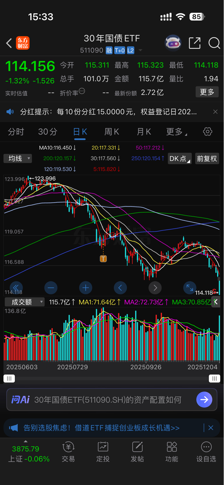 当时也是了买国债,结果下午就跌了,赶紧卖出了,想着不要和趋势作对,顺势