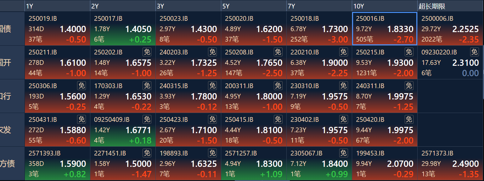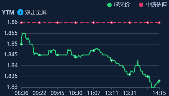 二、十年期国债收益率:1.833 -0.027%(国债收益率越涨,债市越跌,两者反向关系)