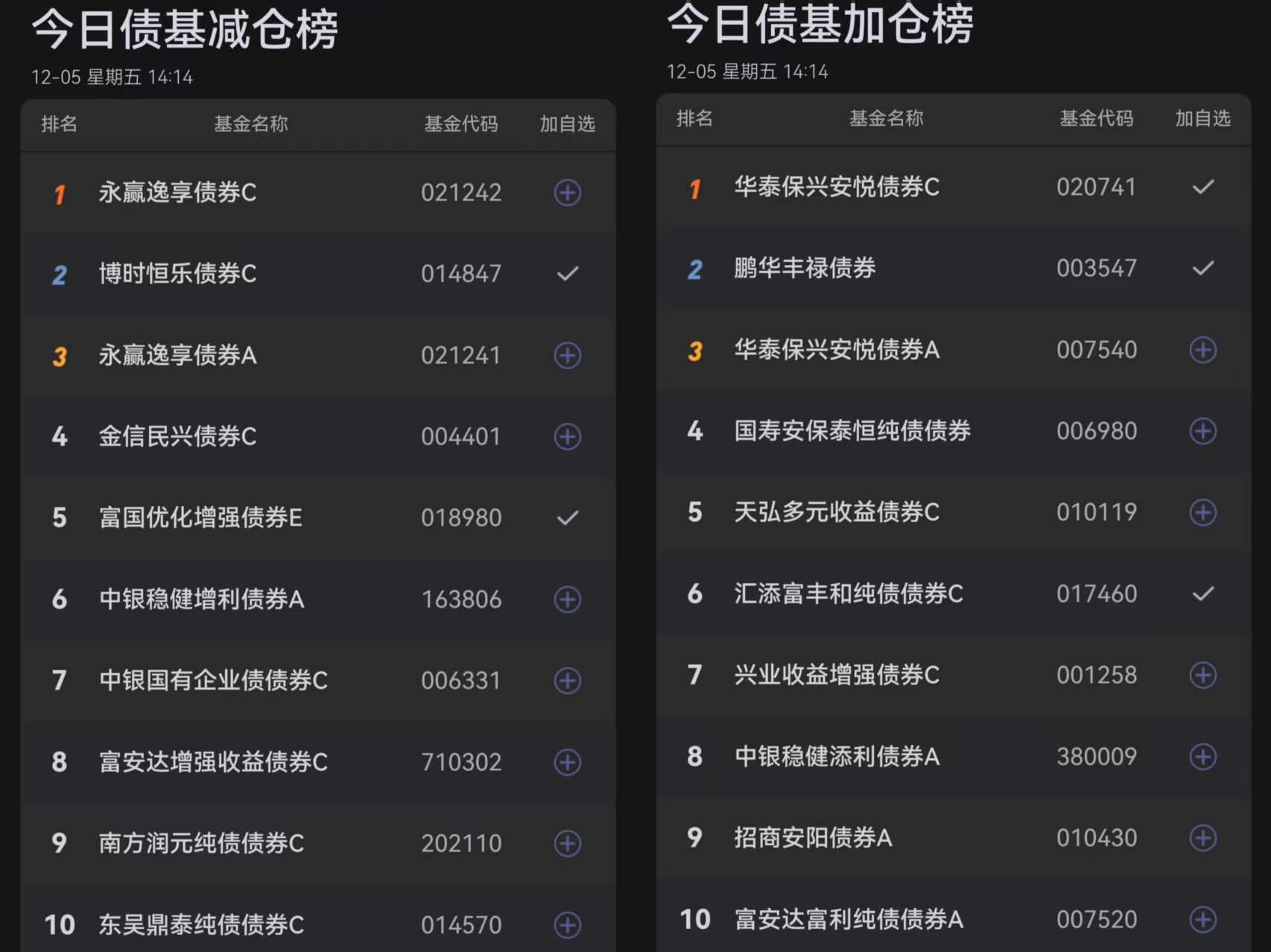 五、今日债基榜单: