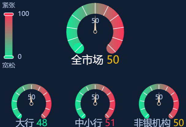 五、资金面情绪指数:全市场50 资金面紧平衡 (0-100紧张度递增,50为均衡,超过50反映资金紧张)