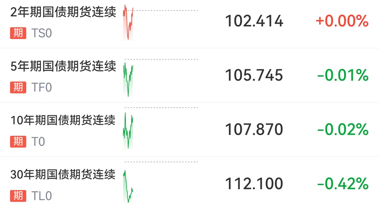 一、国债期货:-0.037%(反映市场对未来债市预期,国债期货越涨,债市越涨,两者正向关系)