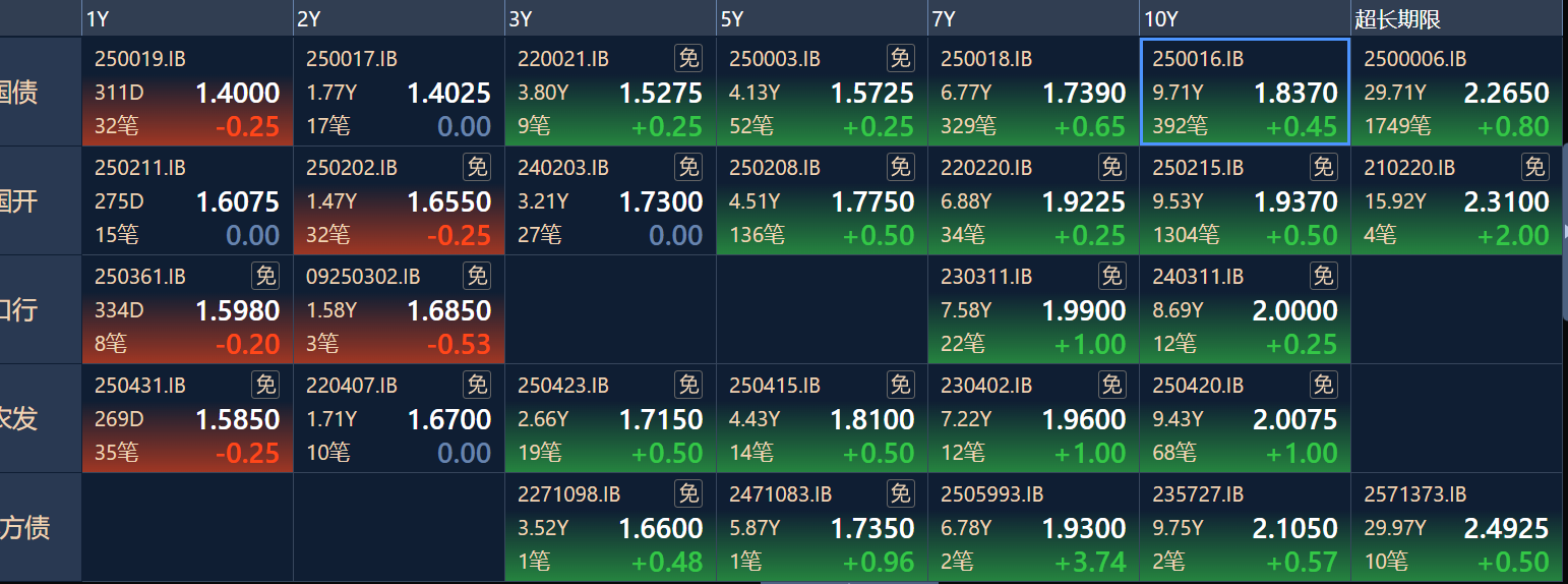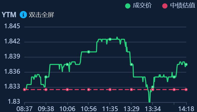 二、十年期国债收益率:1.8375 0.005%(国债收益率越涨,债市越跌,两者反向关系)