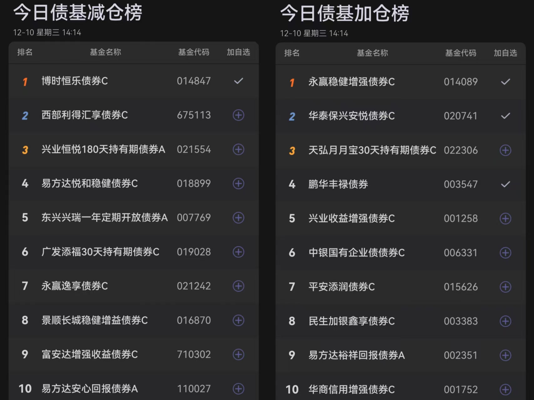 五、今日债基榜单: