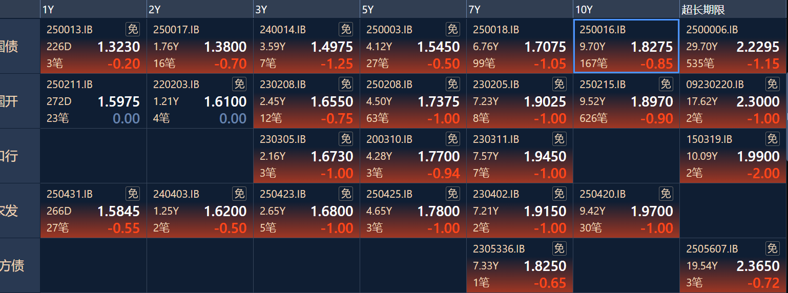 二、十年期国债收益率:1.8275 -0.0085%(国债收益率越涨,债市越跌,两者反向关系)