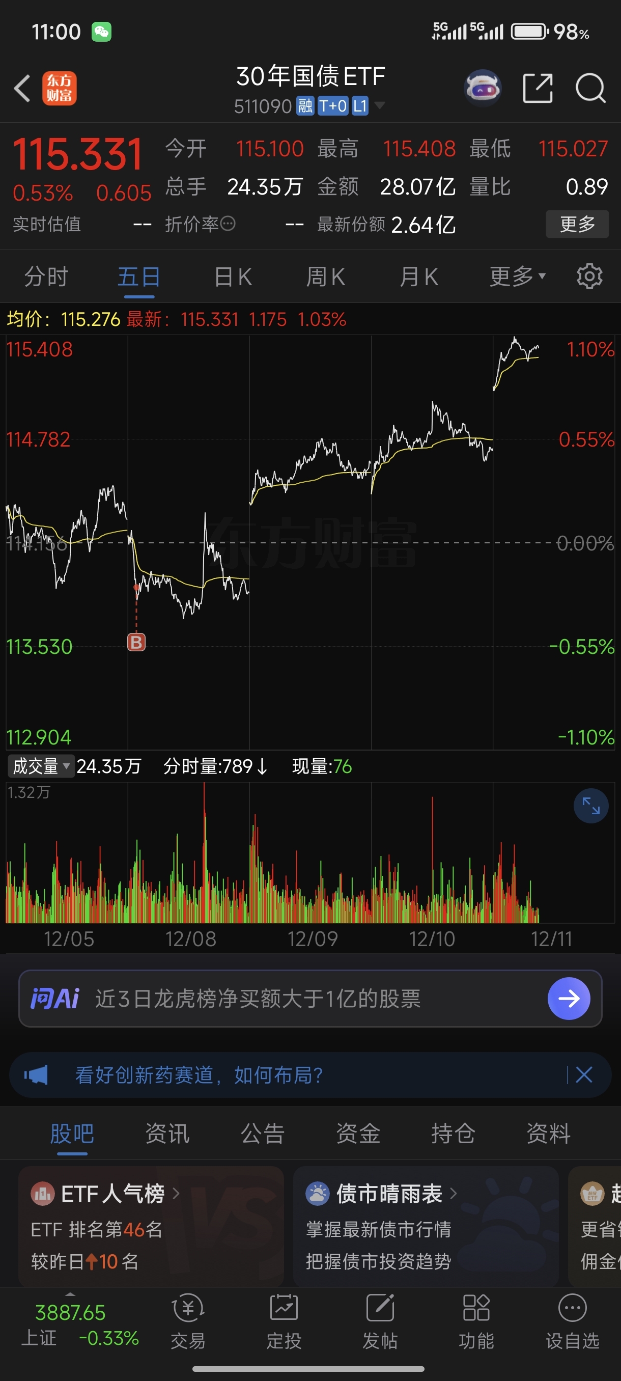 $30年国债ETF(SH511090)$ 抄底成功,虽然只买了一手。发工资我再买,咱就说这利率不比存银行香吗