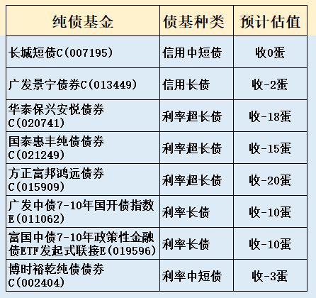 晚上超长端利率债基可能碎大蛋。长端利率债基可能碎大蛋,中短利率债基可能碎中小蛋。
