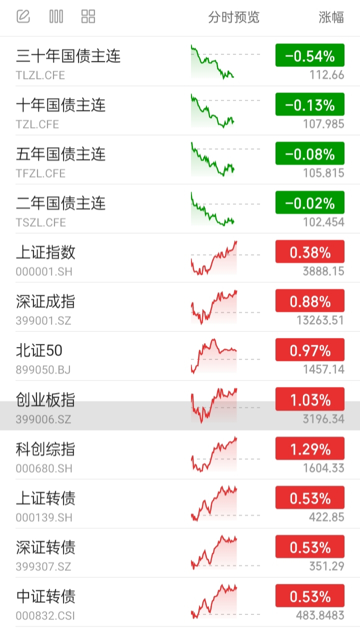 下午股市上涨,目前全部上涨。可转债主要指数全部上涨。