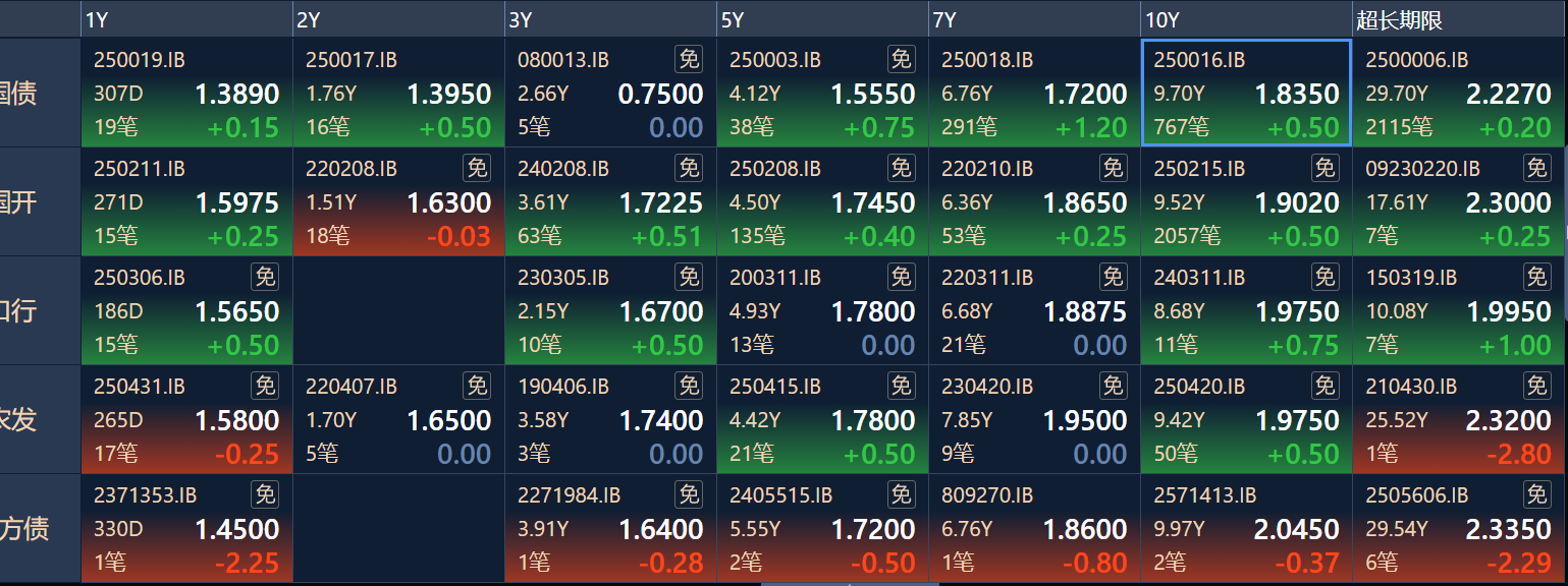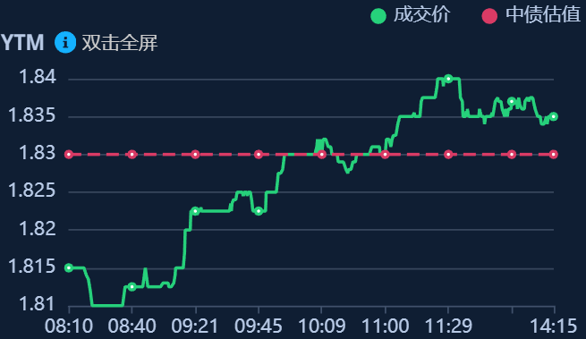 二、十年期国债收益率:1.835 -0.005%(国债收益率越涨,债市越跌,两者反向关系)