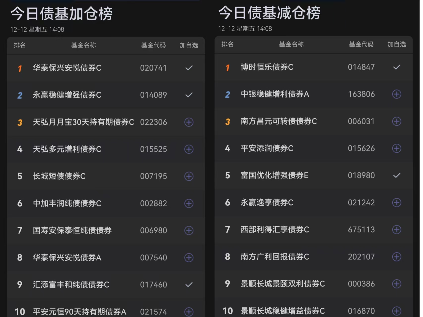 五、今日债基榜单: