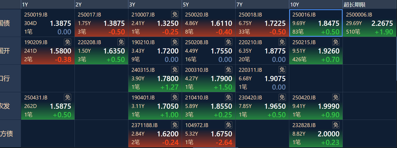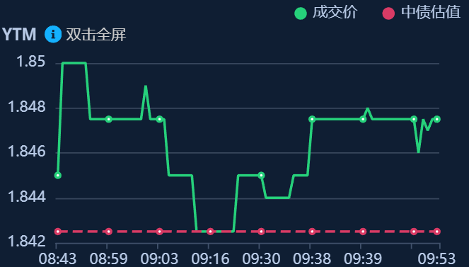 二、十年期国债收益率:1.849 0.0065%(国债收益率越涨,债市越跌,两者反向关系)