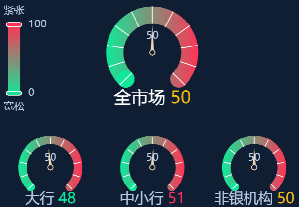五、资金面情绪指数:全市场50 资金面紧平衡 (0-100紧张度递增,50为均衡,超过50反映资金紧张)