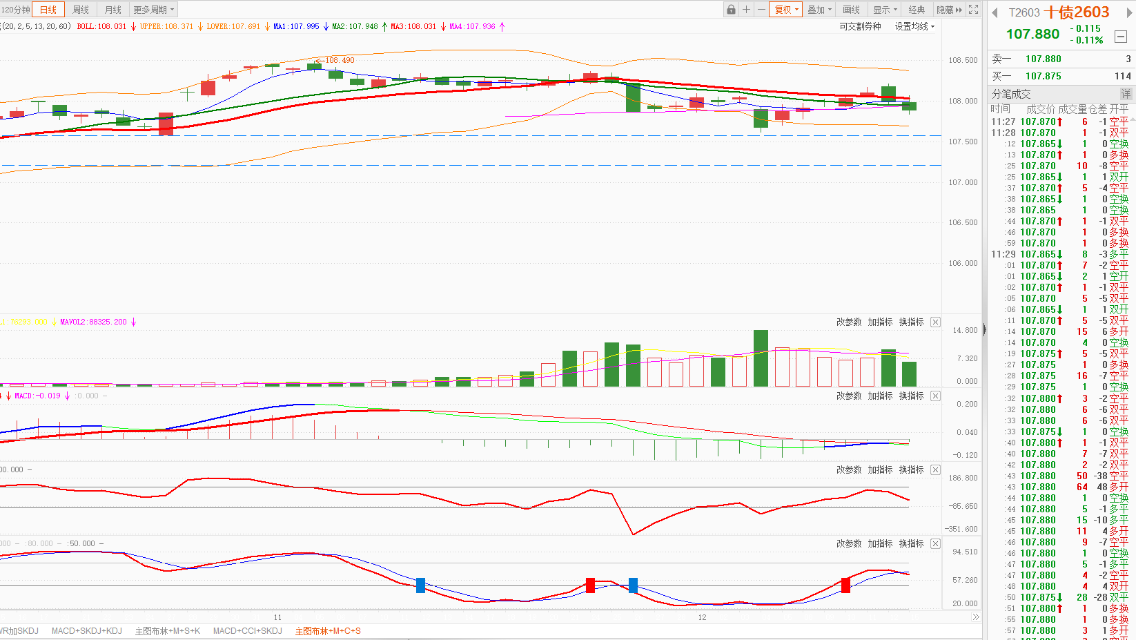 今天10年国债期货平开低走,跌0.11%,日K线在5日均线之下。