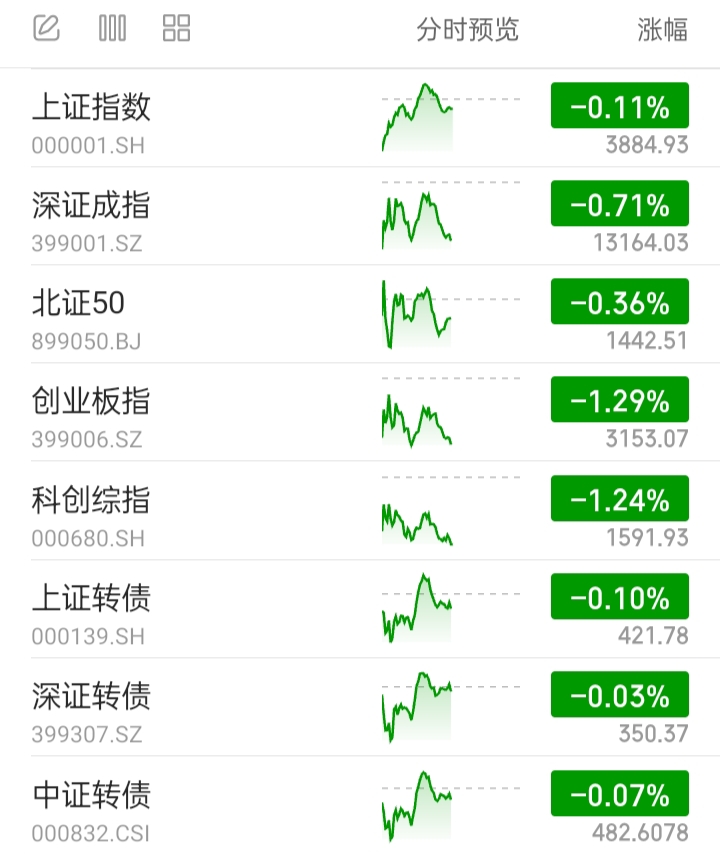 A股市场重要指数:全部下跌。今天偏股混基可能下跌。