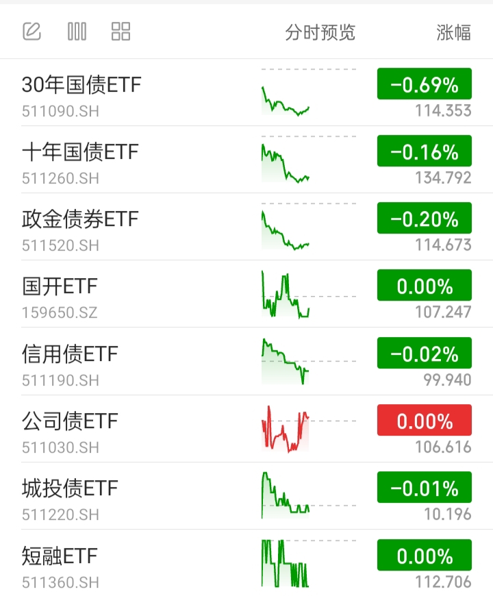 十年国债ETF,代表7-10年长端利率债基。下跌