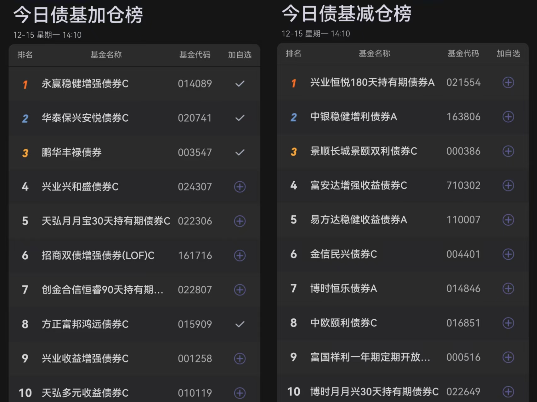 五、今日债基榜单: