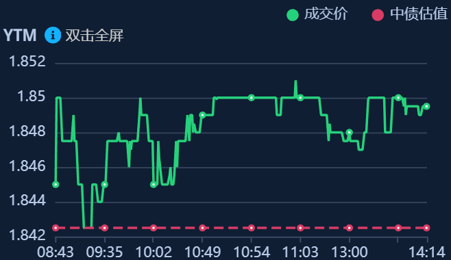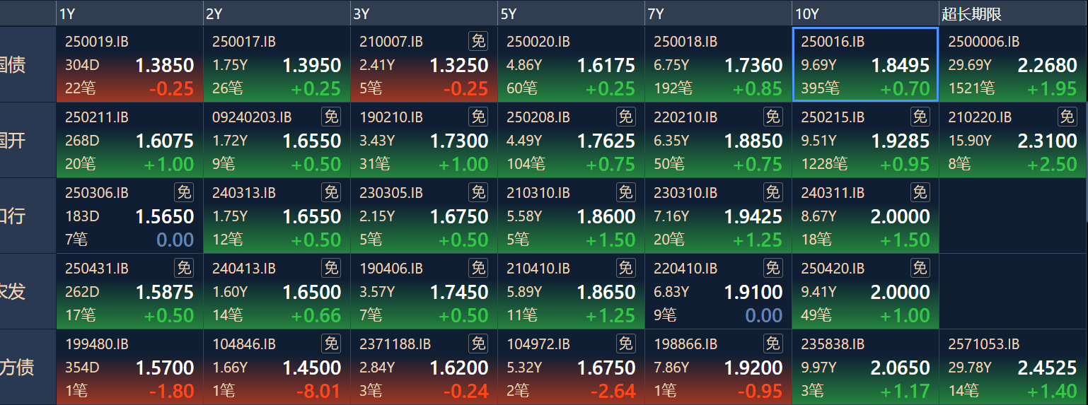 二、十年期国债收益率:1.8495 0.007%(国债收益率越涨,债市越跌,两者反向关系)
