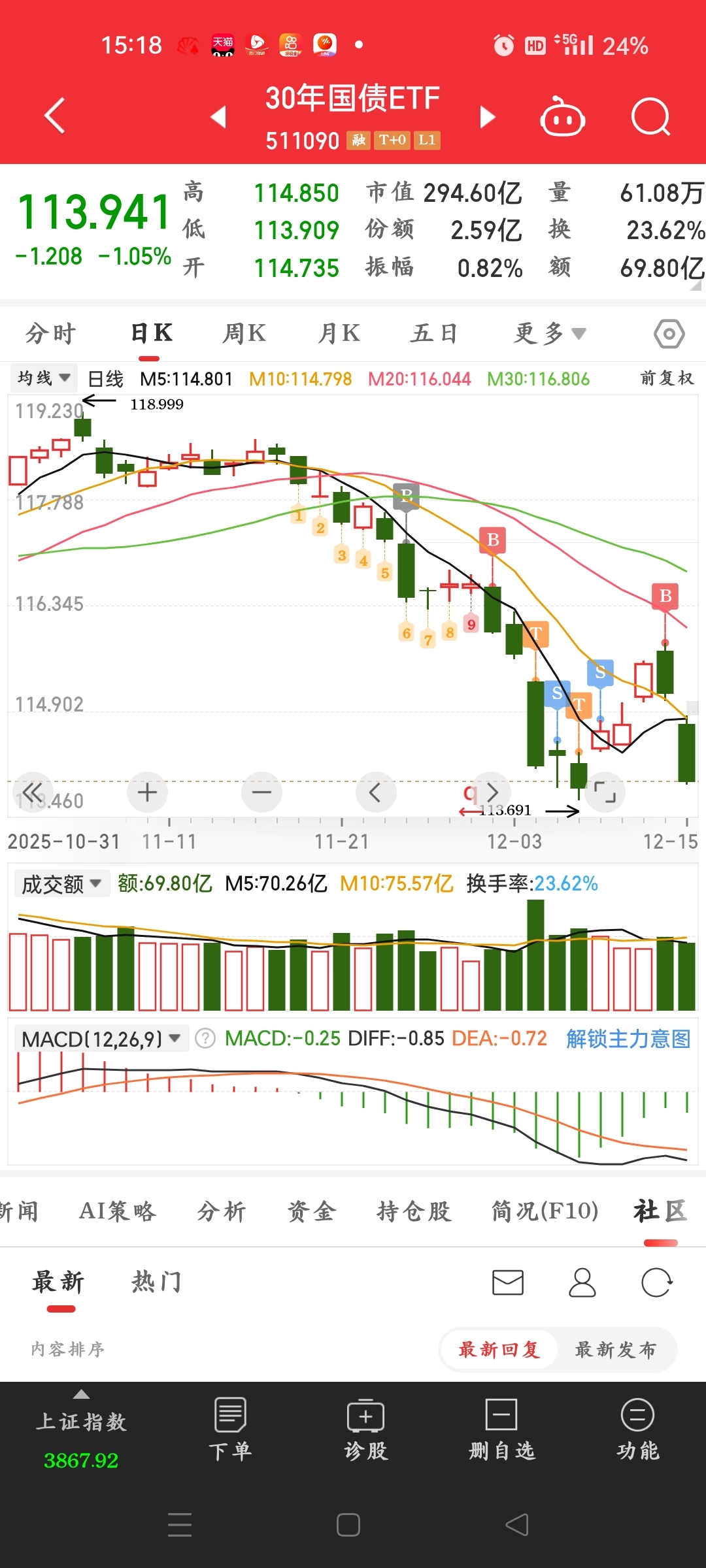 $30年国债ETF(SH511090)$ 一卖就涨,一买就跌,拿着不动继续跌!真的是亏钱的命!啊~~~~~~~~