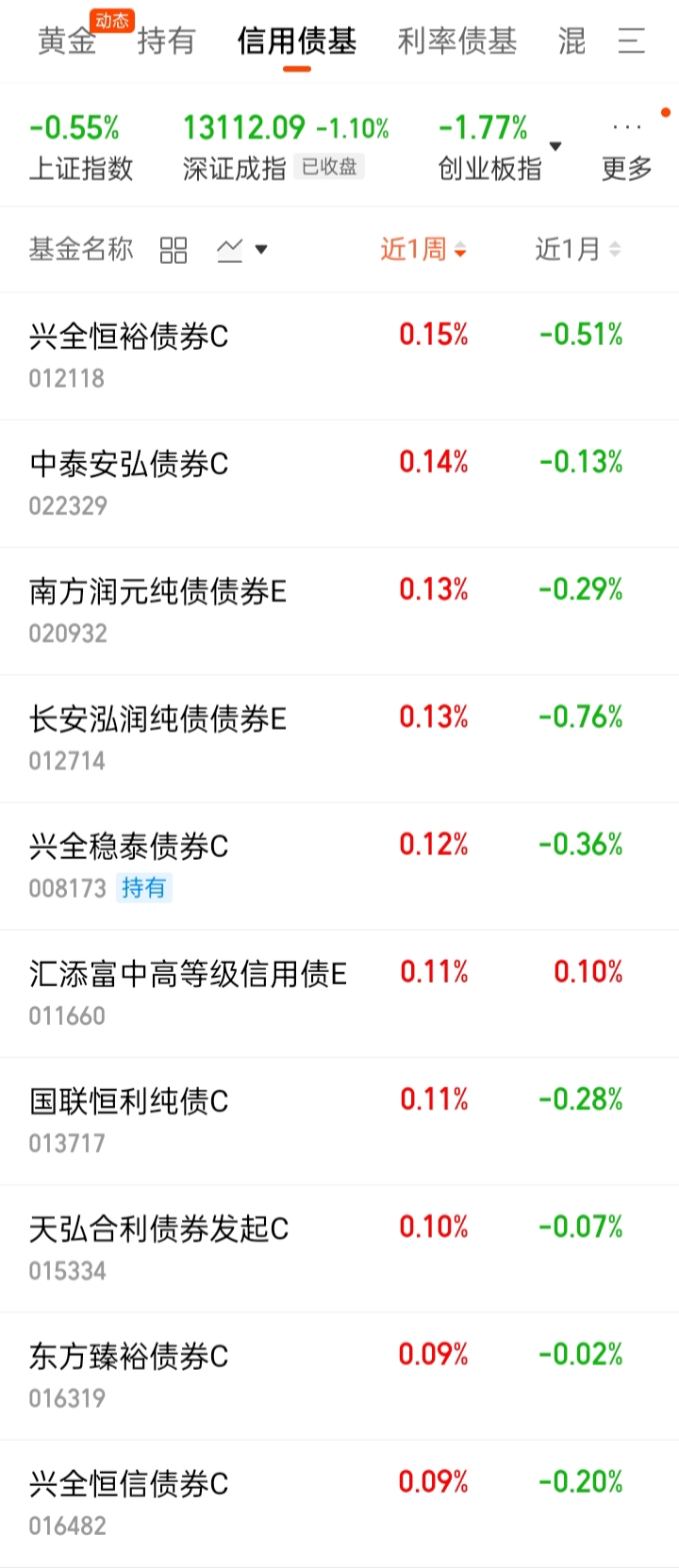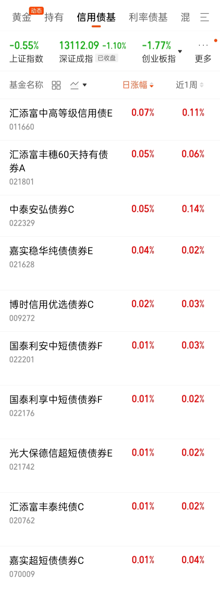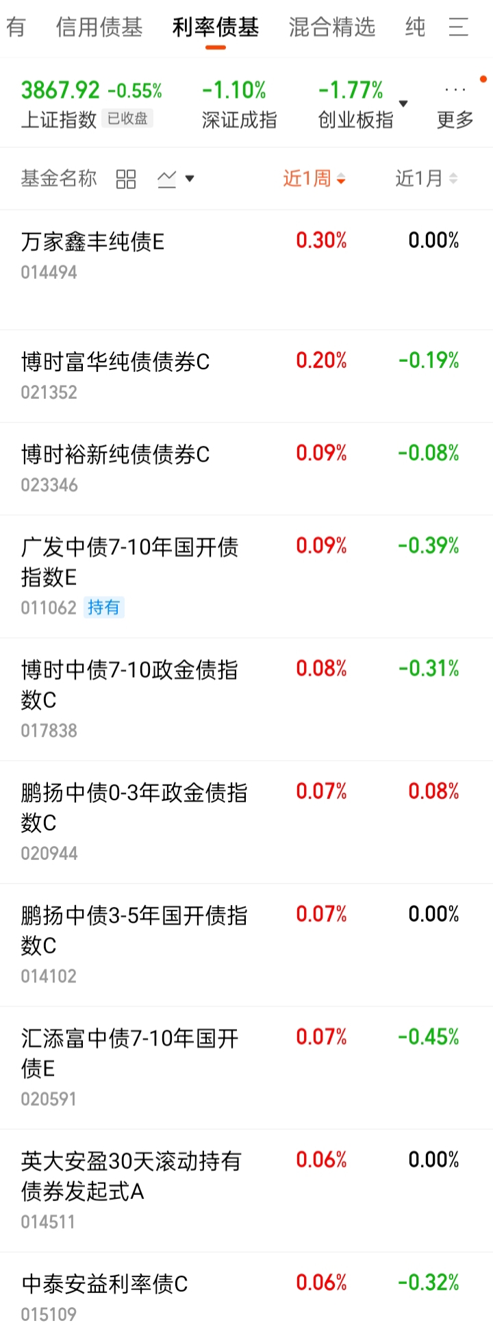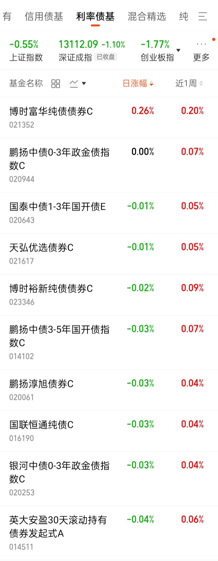 $华泰保兴安悦债券C(OTCFUND|020741)$。$东方添益债券(OTCFUND|400030)$。$华泰保兴安悦债券A(OTCFUND|007540)$ 。$鹏华丰禄债券(OTCFUND|003547)$。$方正富邦鸿远债券C(OTCFUND|015909)$。$永赢稳健增强债券C(OTCFUND|014089)$。$博时恒乐债券C(OTCFUND|014847)$。$易方达增强回报债券A(OTCFUND|110017)$。$长城短债C(OTCFUND|007195)$。$广发中债7-10年国开债指数E(OTCFUND|011062)$