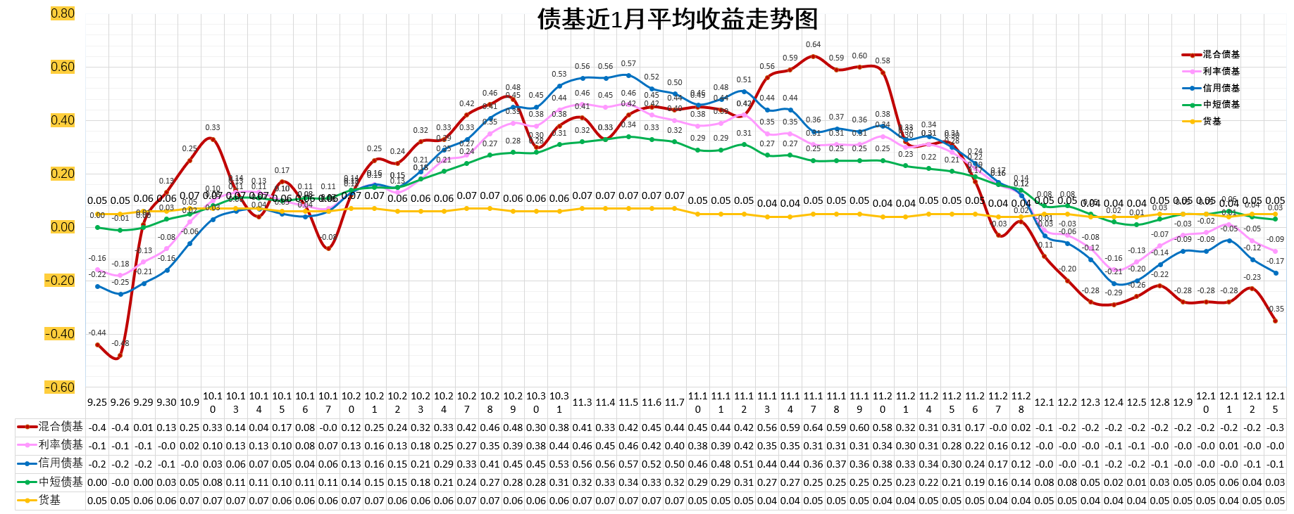 混合债基(混合一级):-0.02%。低于货基,低于利率债基。