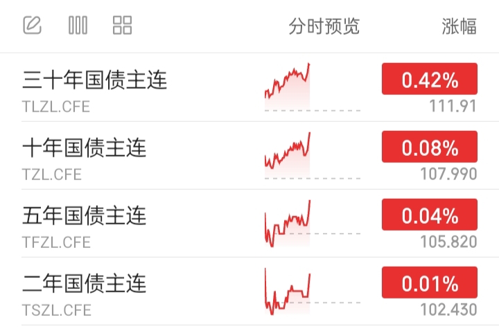 今天2、30年国债期货日K线收盘后在5日均线之下,5、10年国债期货日K线收盘后在5日均线之上,整体走势较强。