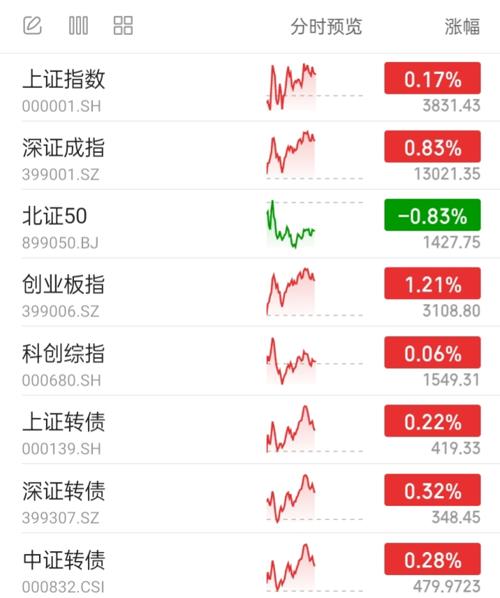 可转债主要指数:全部上涨。今天偏可转债混基可能上涨。