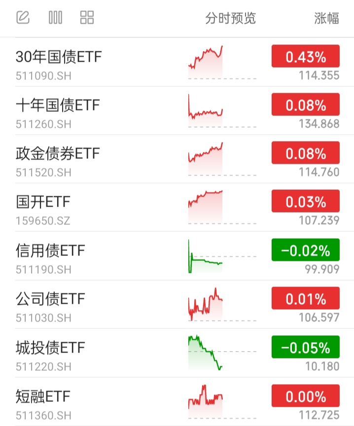政金债券ETF,代表7-10年中长端政金债基。上涨