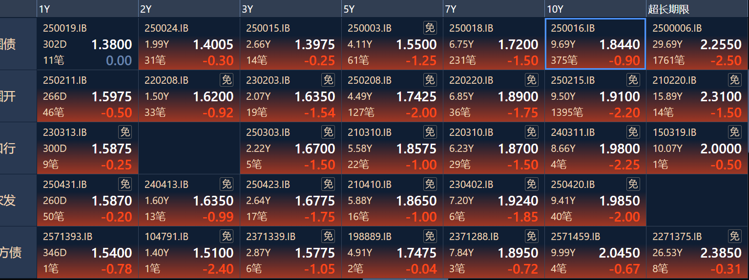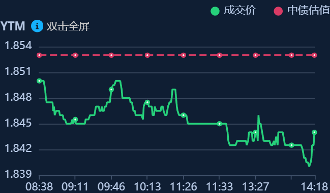 二、十年期国债收益率:1.845 -0.008%(国债收益率越涨,债市越跌,两者反向关系)