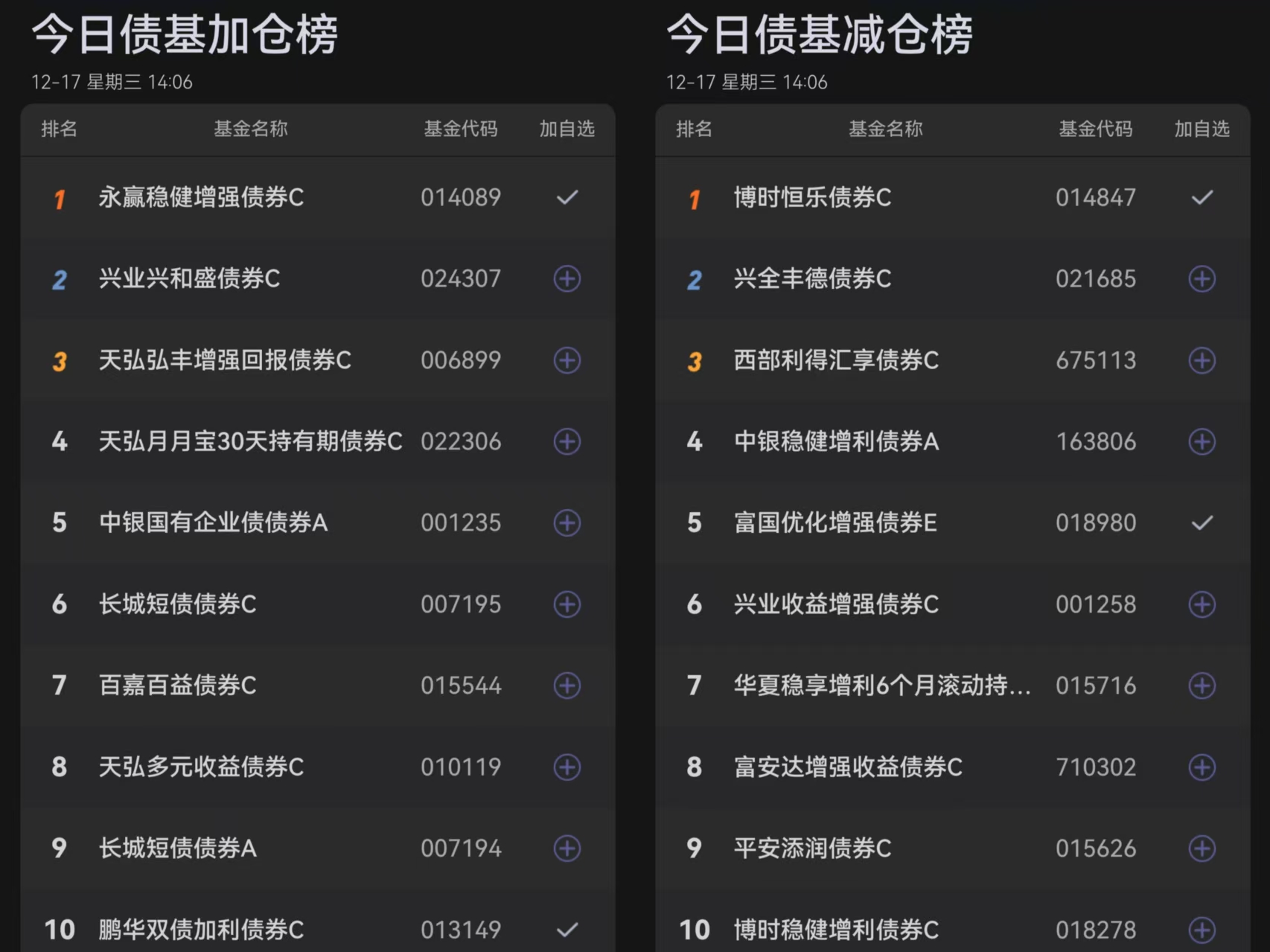 五、今日债基榜单: