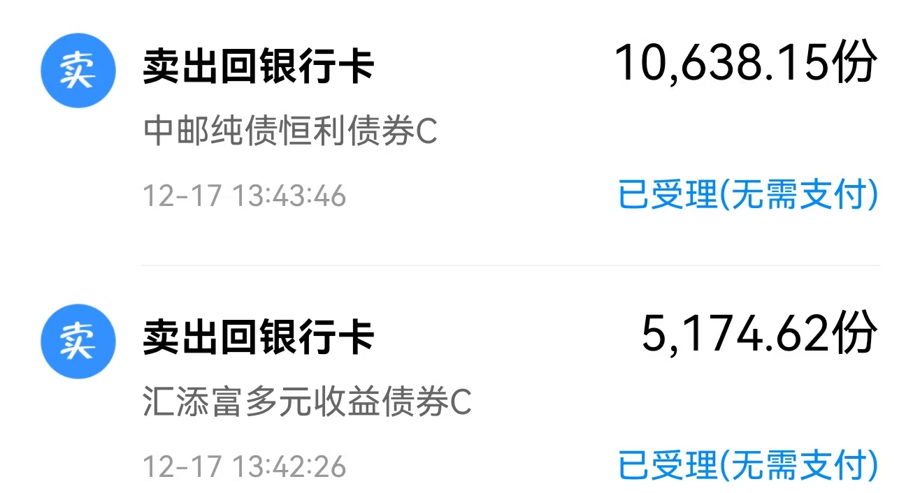 $华泰保兴安悦债券C(OTCFUND|020741)$ $永赢稳健增强债券C(OTCFUND|014089)$ $易方达增强回报债券A(OTCFUND|110017)$ $博时恒乐债券A(OTCFUND|014846)$ $鹏华丰禄债券(OTCFUND|003547)$ $博时恒乐债券C(OTCFUND|014847)$ $银华盛泓债券A(OTCFUND|020955)$ $华泰保兴安悦债券A(OTCFUND|007540)$ $景顺长城稳健增益债券A(OTCFUND|016869)$ #沐曦股份今日上市!中一签能赚多少?#