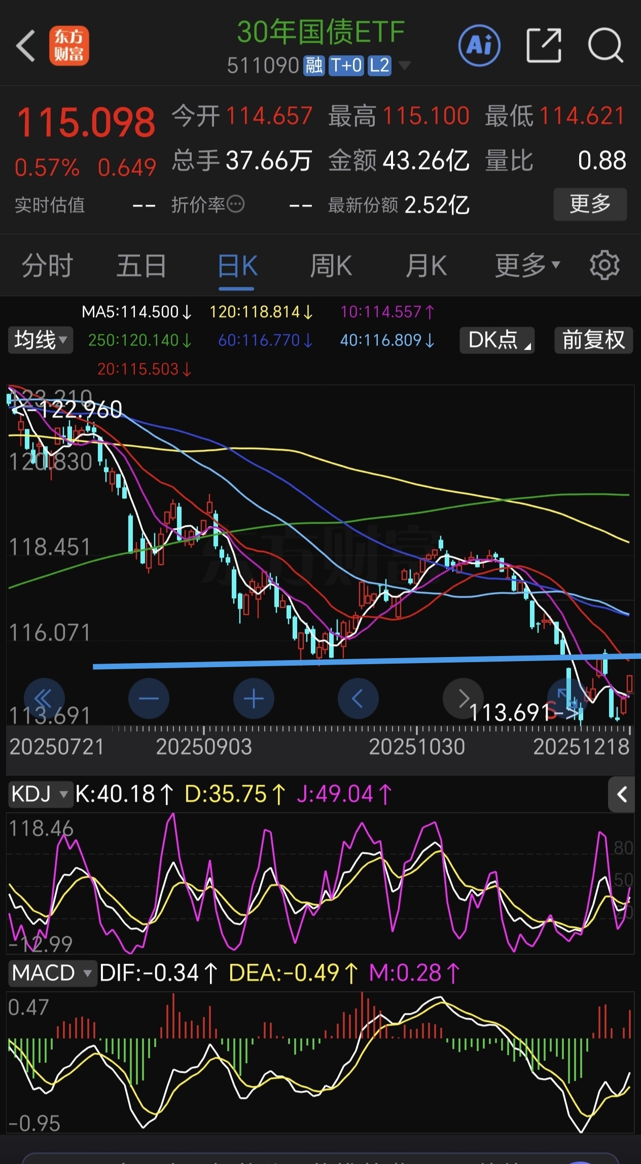 $30年国债ETF(SH511090)$ 走的挺好的,明天接受挑战,明天就会到达下图位置,这里既是均线压力位,又是前期跌破产生的压力位,还是几天前反弹到的压力位,各个压力产生的一个位置,最好别缩量,放量站稳就好了。