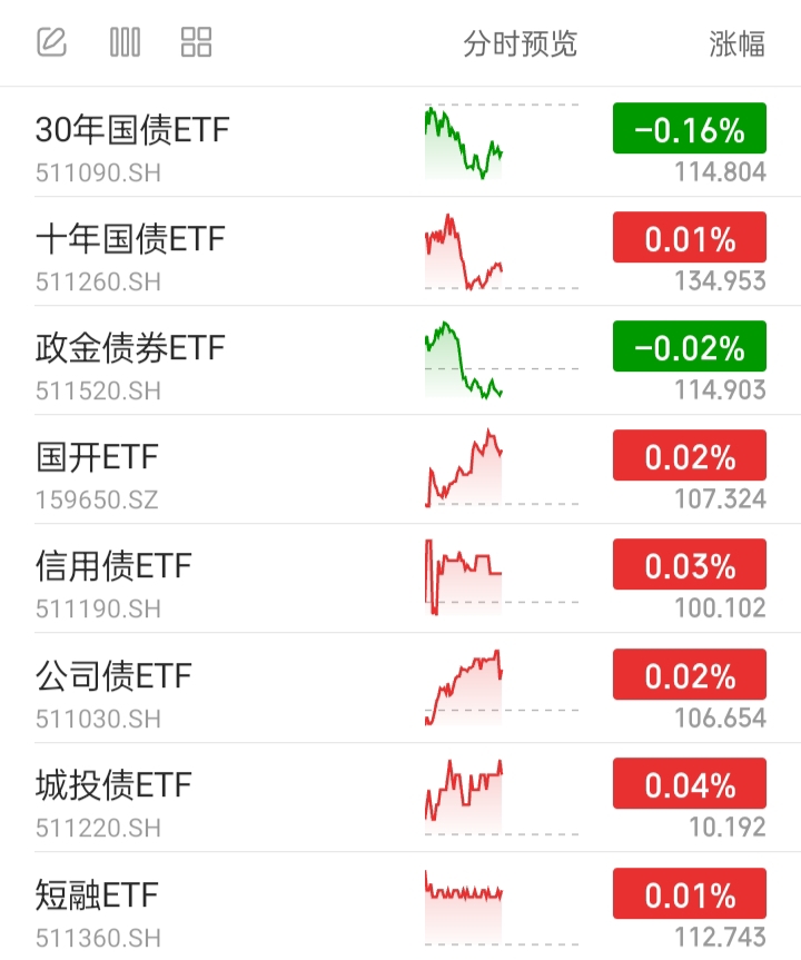 信用债ETF、公司债ETF、城投债ETF,代表信用债基。全部上涨