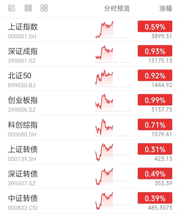 A股市场重要指数:全部上涨。今天偏股混基可能上涨。