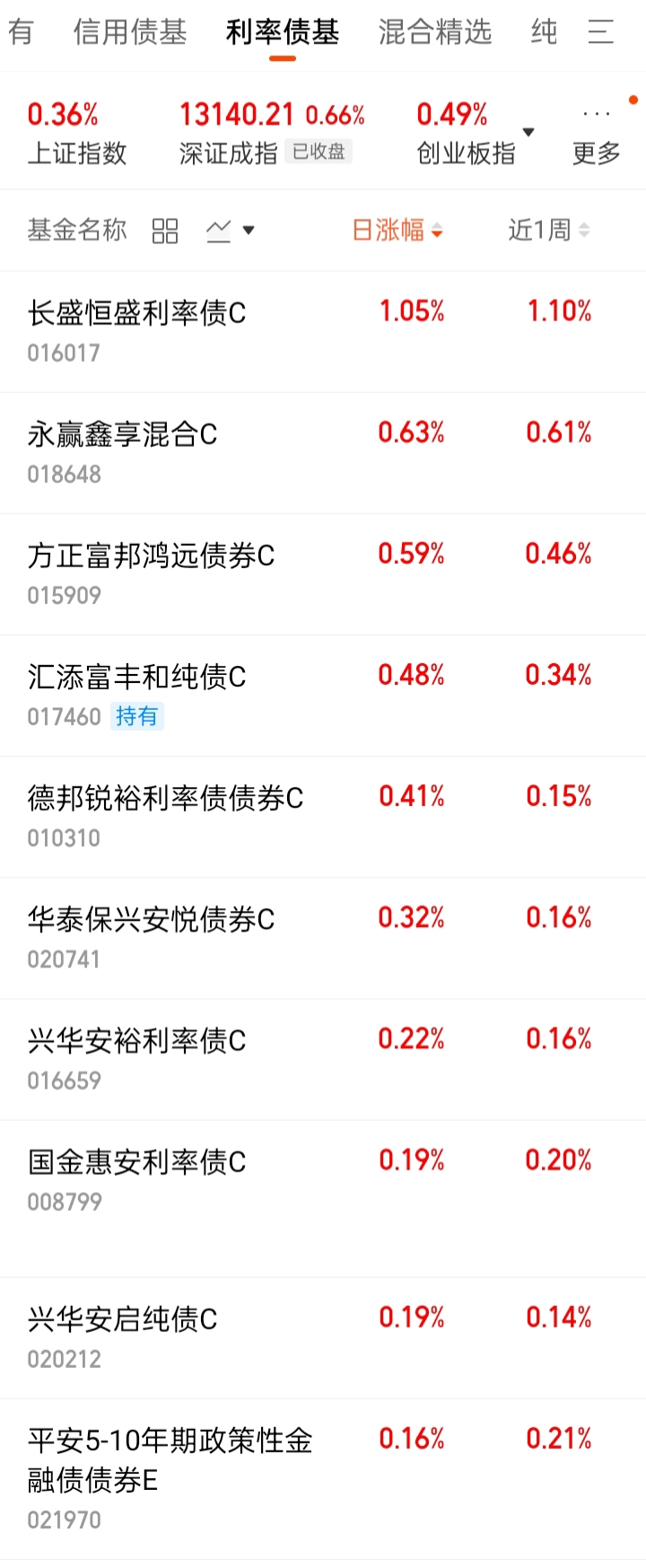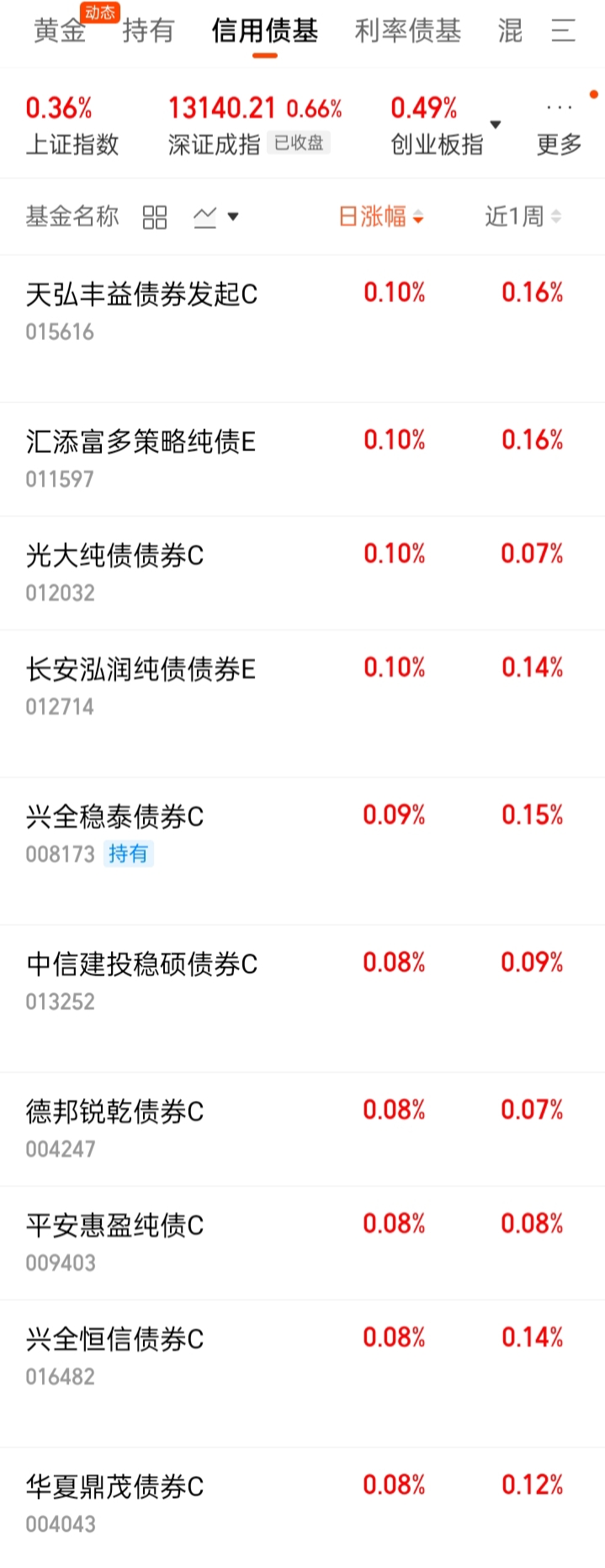 $华泰保兴安悦债券C(OTCFUND|020741)$。$东方添益债券(OTCFUND|400030)$。$华泰保兴安悦债券A(OTCFUND|007540)$ 。$鹏华丰禄债券(OTCFUND|003547)$。$方正富邦鸿远债券C(OTCFUND|015909)$。$永赢稳健增强债券C(OTCFUND|014089)$。$博时恒乐债券C(OTCFUND|014847)$。$易方达增强回报债券A(OTCFUND|110017)$。$长城短债C(OTCFUND|007195)$。$广发中债7-10年国开债指数E(OTCFUND|011062)$