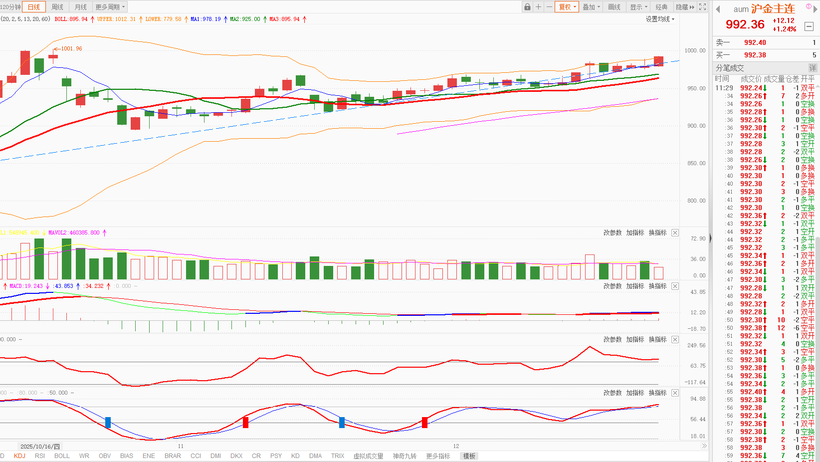 沪金主连:涨1.24%,日K线在5日均线之上。今天沪金上涨,创近期新高,离历史新高也不远了,目前或已结束整理,后市可能继续震荡上行。仓位重的和做波段的可逢高分批部分止盈。