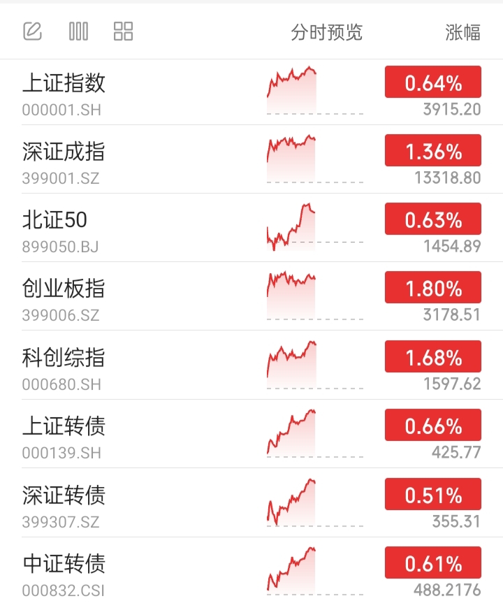 可转债主要指数:全部上涨。今天偏可转债混基可能上涨。