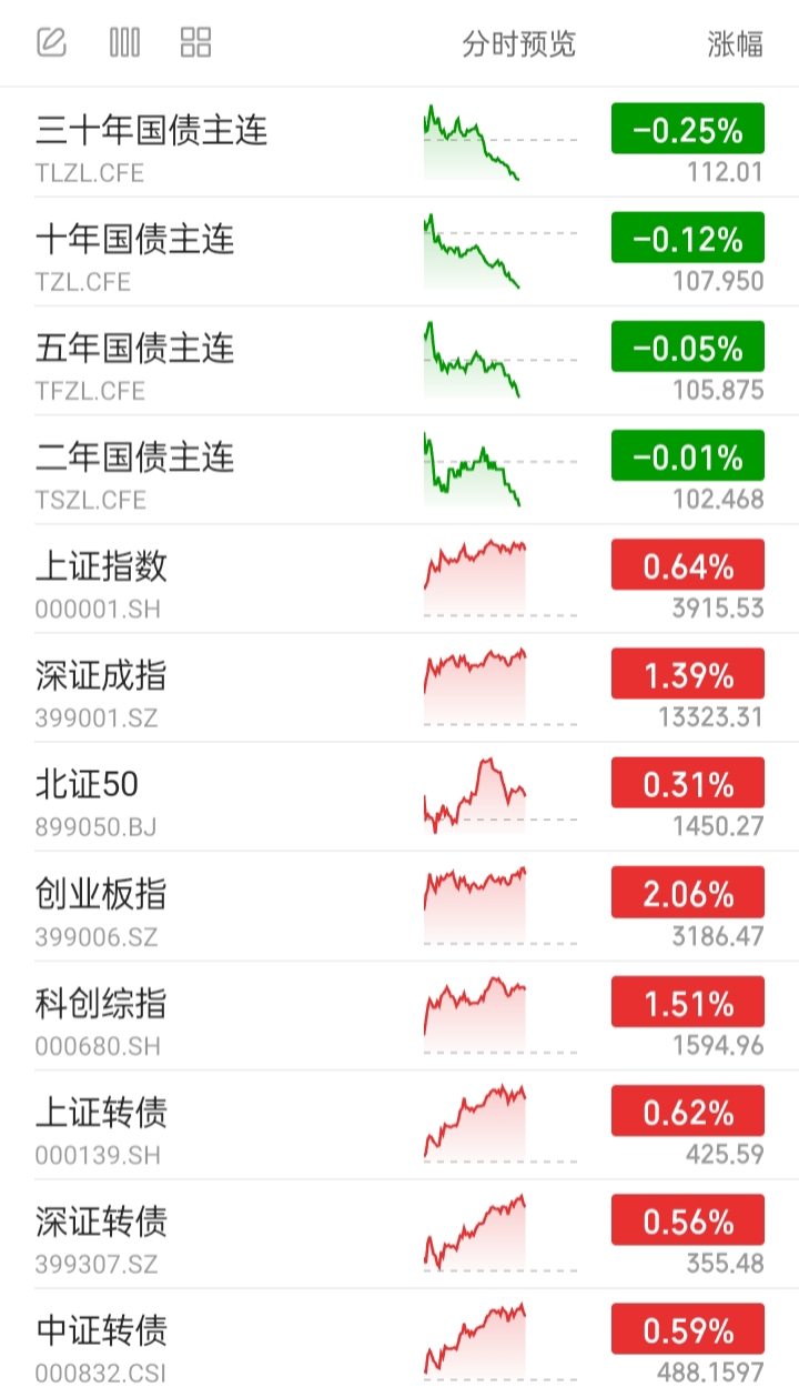 下午股市小幅震荡,目前全部上涨。可转债主要指数全部上涨。