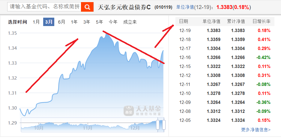 天弘多元收益在经过一轮大幅回调后,近期已筑底成功,近3天连续收恐龙蛋,向上突破下降趋势线,后市可能开启一波上升走势。