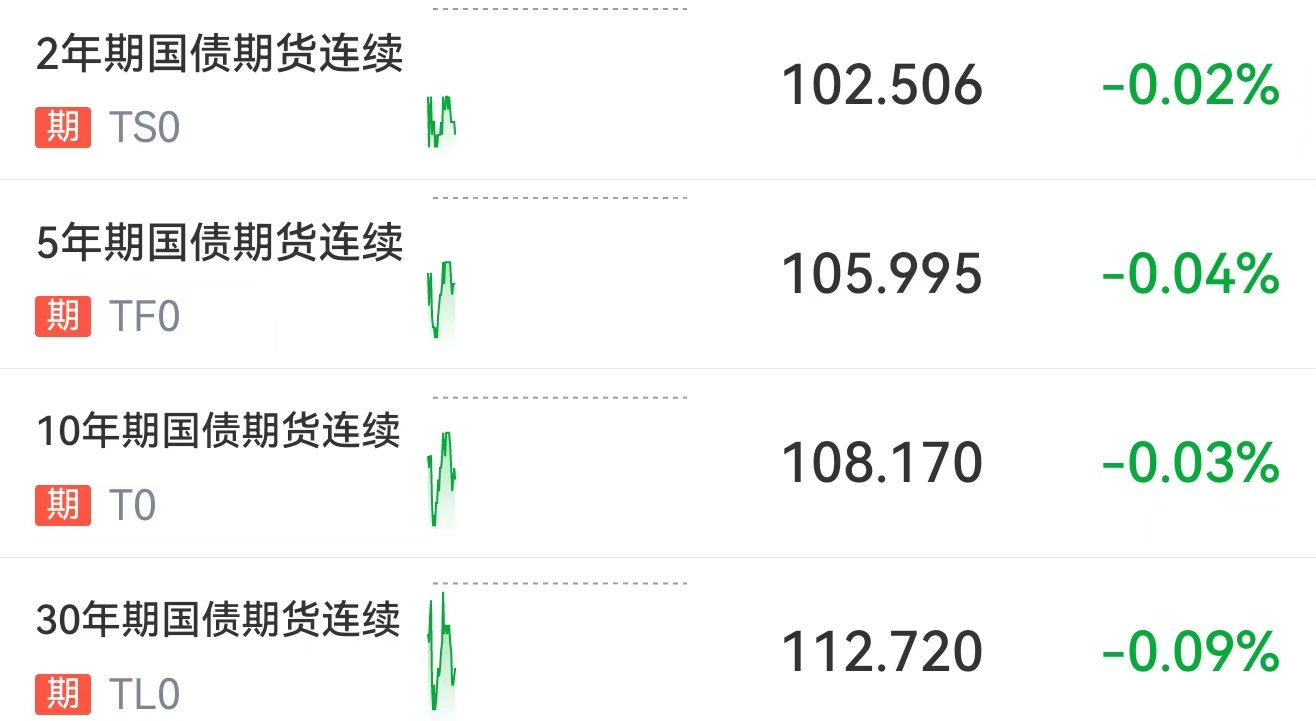 一、国债期货:-0.042%(反映市场对未来债市预期,国债期货越涨,债市越涨,两者正向关系)