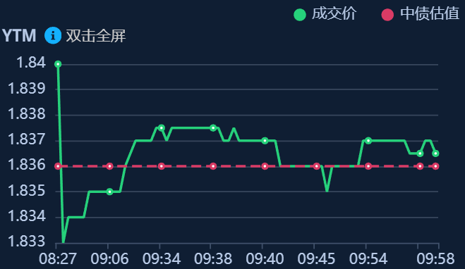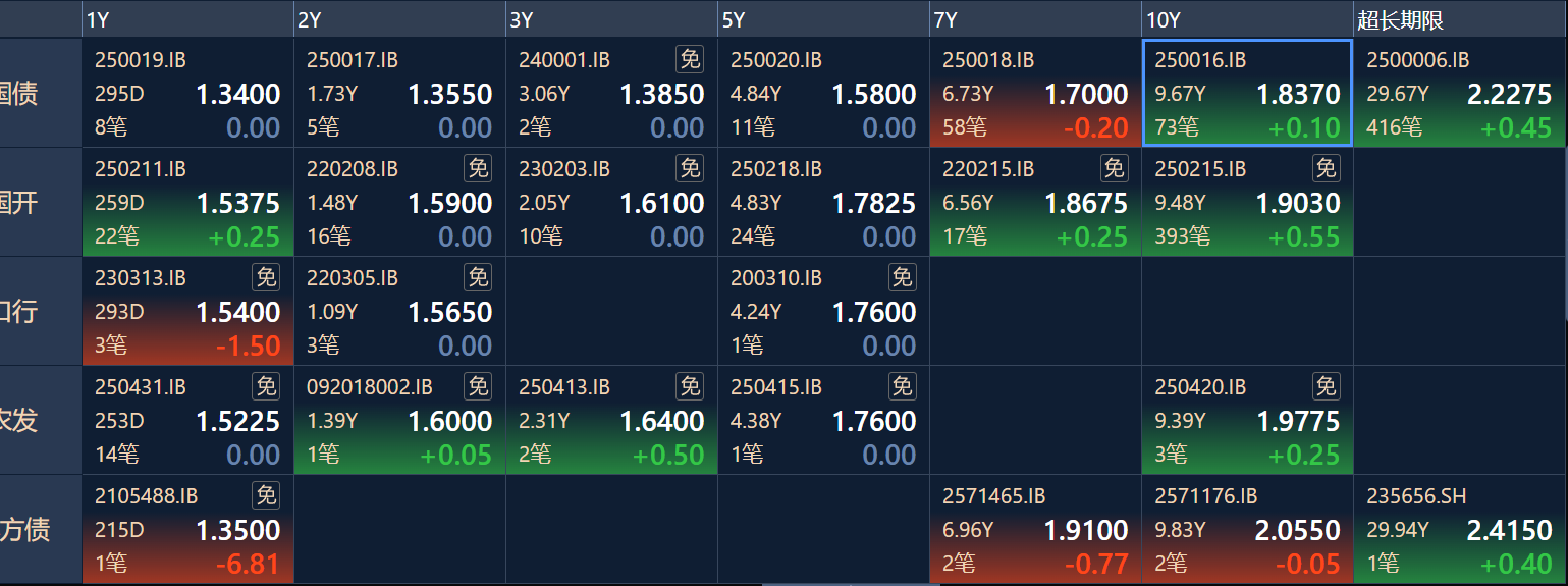二、十年期国债收益率:1.8365 0.0005%(国债收益率越涨,债市越跌,两者反向关系)