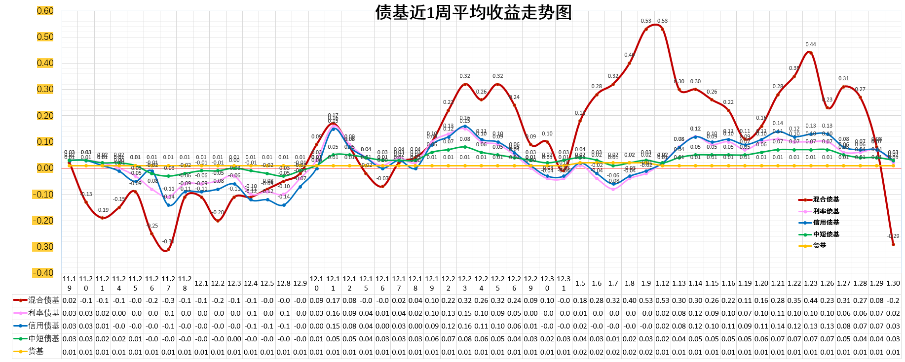 混合债基(混合一级):-0.29%。低于货基,低于债基。