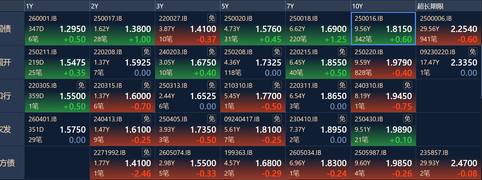 二、十年期国债收益率:1.815 0.006%(国债收益率越涨,债市越跌,两者反向关系)