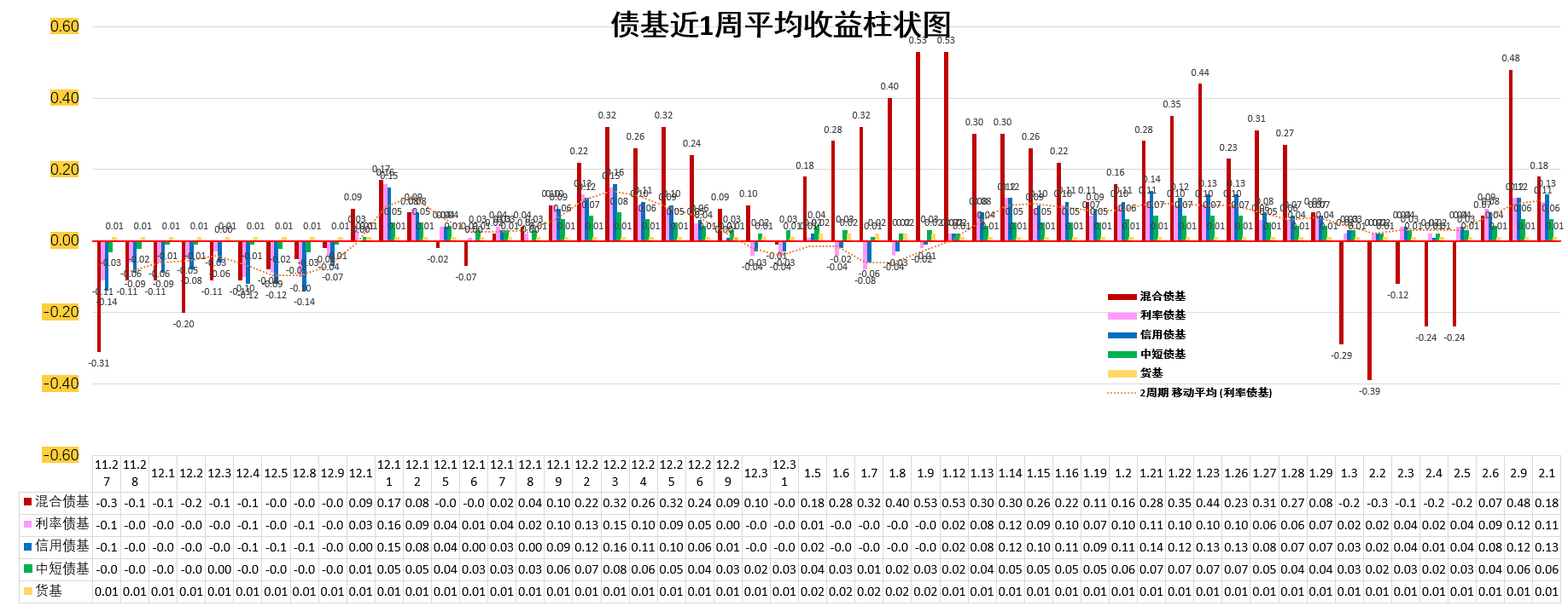 债基近1周平均收益:
