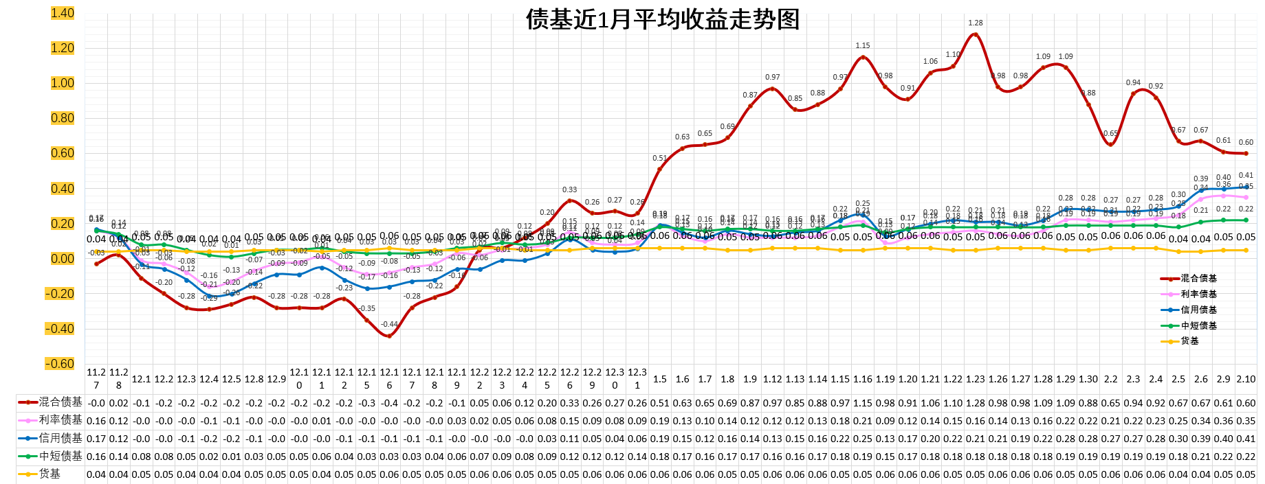 司机已将前期的【债基平均收益走势】和【百万实盘】、【债市2点半】全部合并在这篇【债市午盘】文章内,【债市2点半】和补充操作(如有)放在这篇文章的评论区置顶,想要了解的朋友可在评论区里查看。
