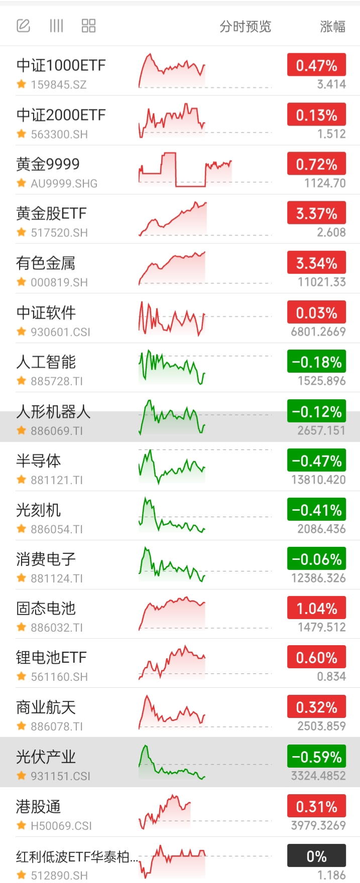 5、黄金(黄金999与上海金基金的涨跌直接对应,更直观。)