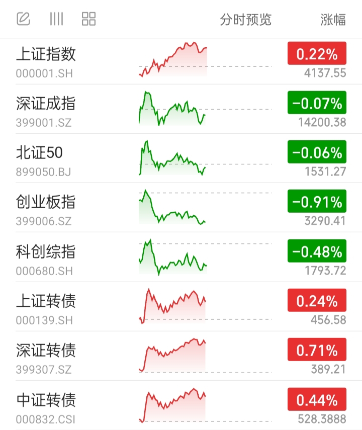 可转债主要指数:全部上涨。今天偏可转债混基可能上涨。