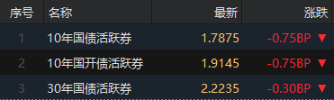 10年国债活跃券先下后上行,总体涨0.75BP,最新1.7875。盘中创近期新低。
