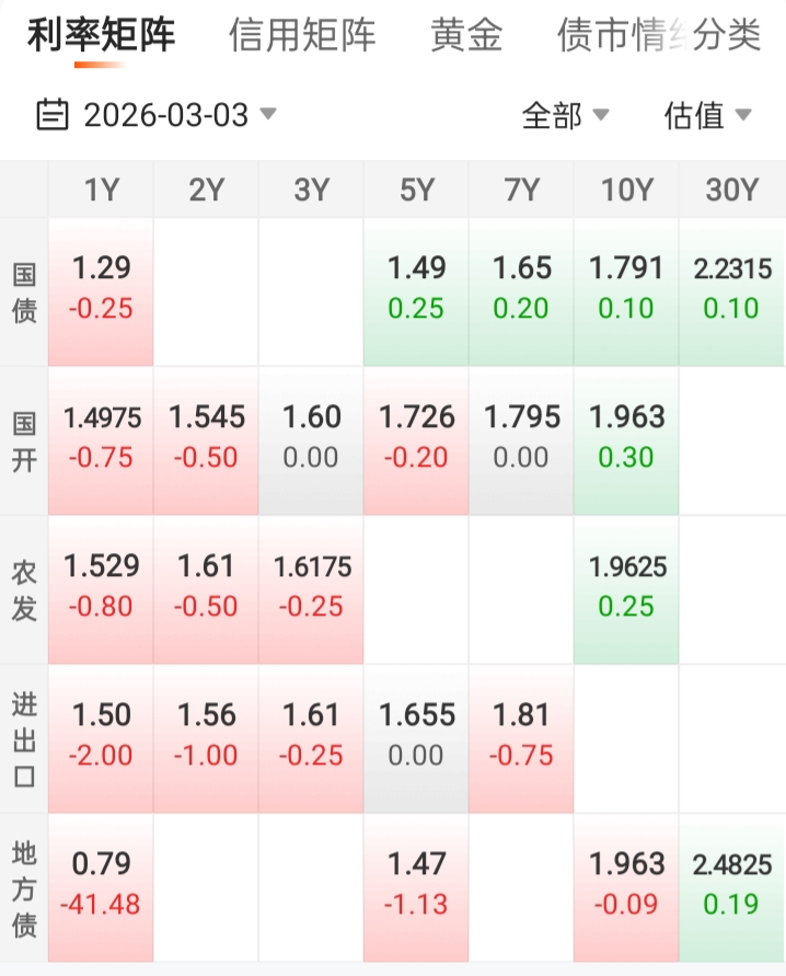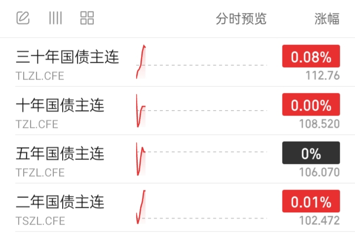 今天债市有涨有跌。整体表现一般。如维持至收盘