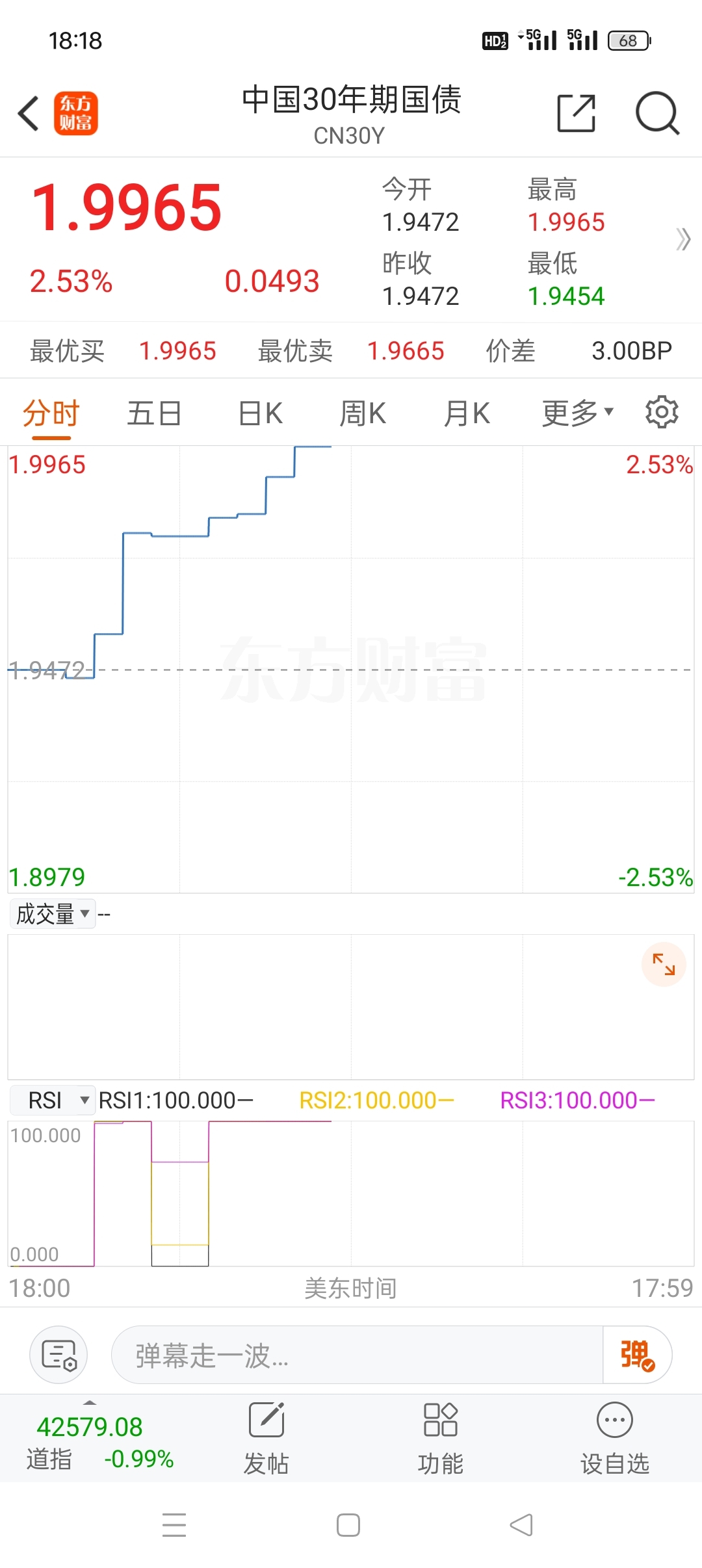 这个今天涨了一点多,国债指数跌了一点多。现在又涨了两点多,是不是星期一30年国债